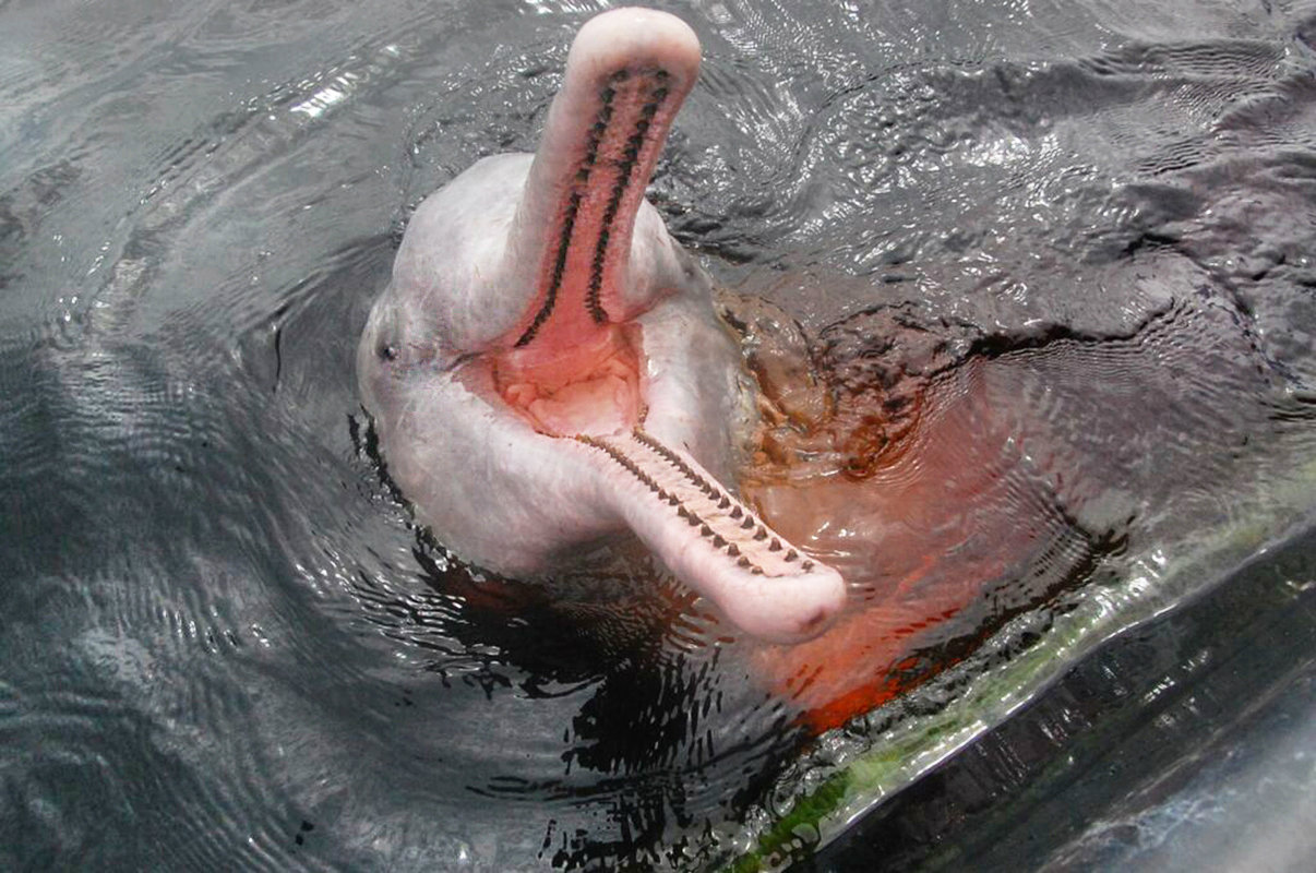 We’ll hop onto our private boat and navigate upriver along the Rio Negro, the main tributary of the Amazon river, for about an hour and a half. Our guide will take us to an area where the pink dolphins can be found. An IBAMA-certified professional will offer fish to attract the dolphins in the area (IBAMA is the Brazilian national authority for environmental sustainability, and it supervises this activity). The professional caretaker will tell us about some of the unique features of this mammal, that allow it to thrive in both extremely high and very low tides, and to sort their way through the underwater thickets as they hunt their food. This species is unique to the Amazon basin and, being the largest freshwater dolphin in the world, can grow to up to 8 feet in length.