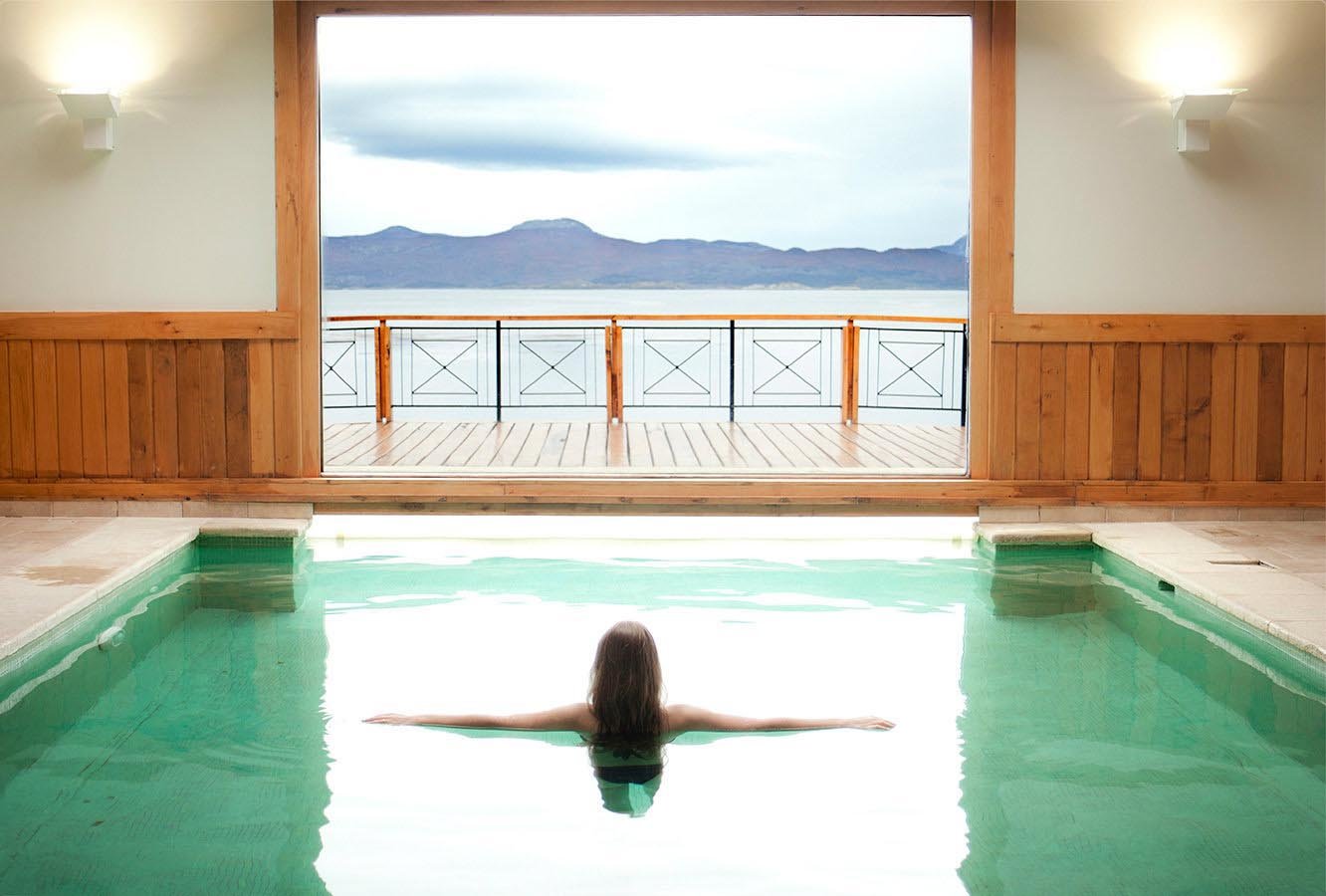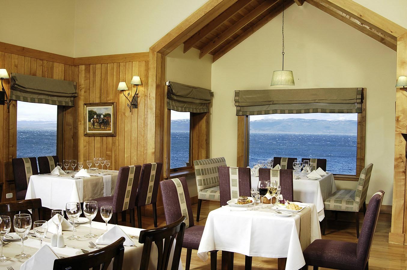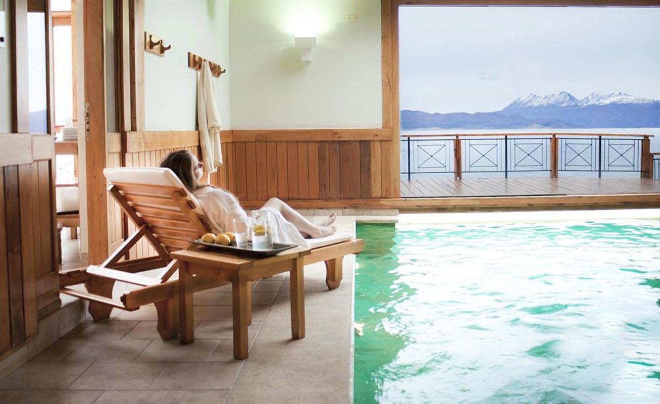 The hotel features rooms with views either to the mountains or to the Beagle Channel.