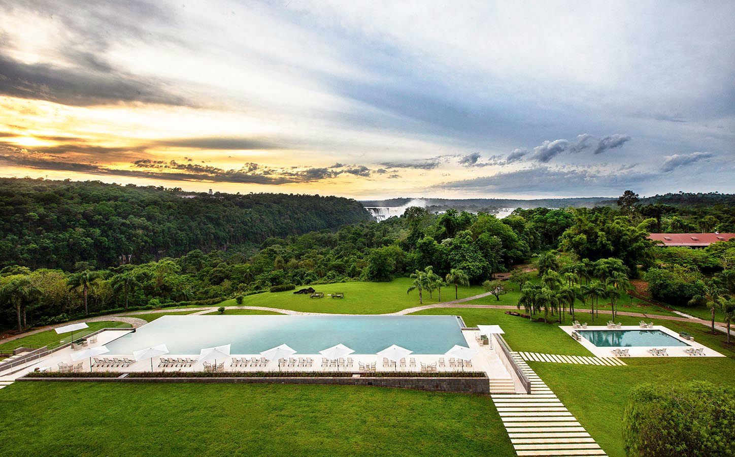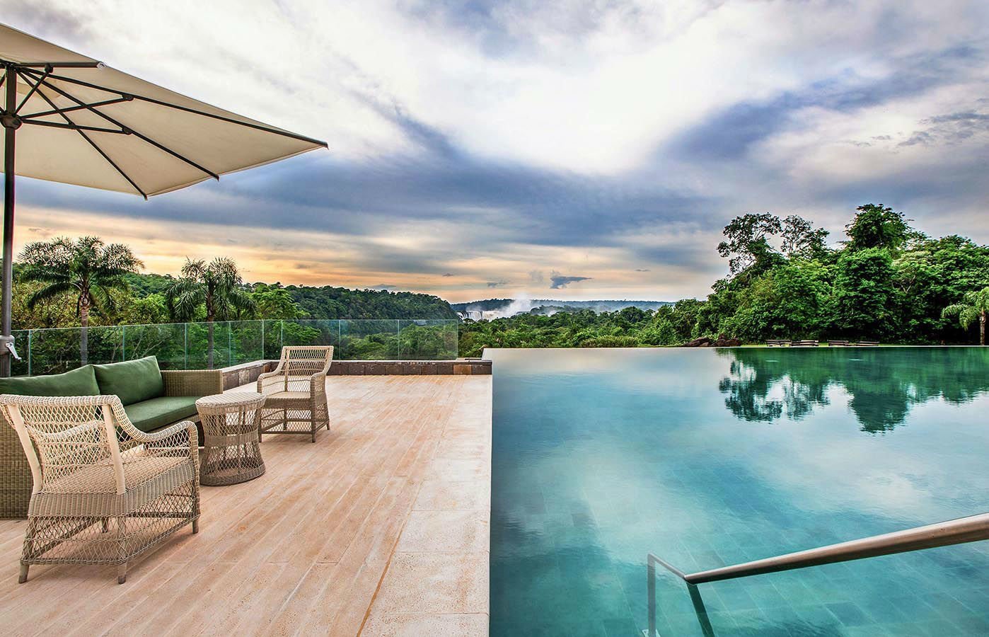 Guests can unwind on the lounge chairs by the pool, hike through the lush garden surrounding the property, or visit the Iguazu Falls which are at walking distance.